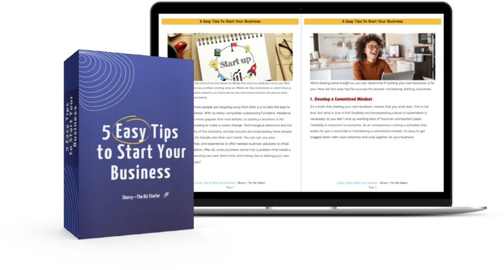 10-Page PDF Guide filled with east tips to get to success with starting your business. Bonus start your online business checklist included to save you time with all the tools and tasks you need to get your business started in less than a week.